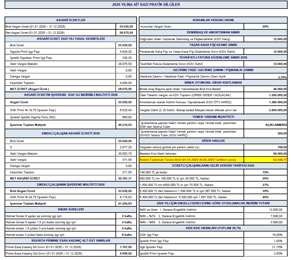 2026 Yılı VERGİ-SGK Pratik Bilgiler